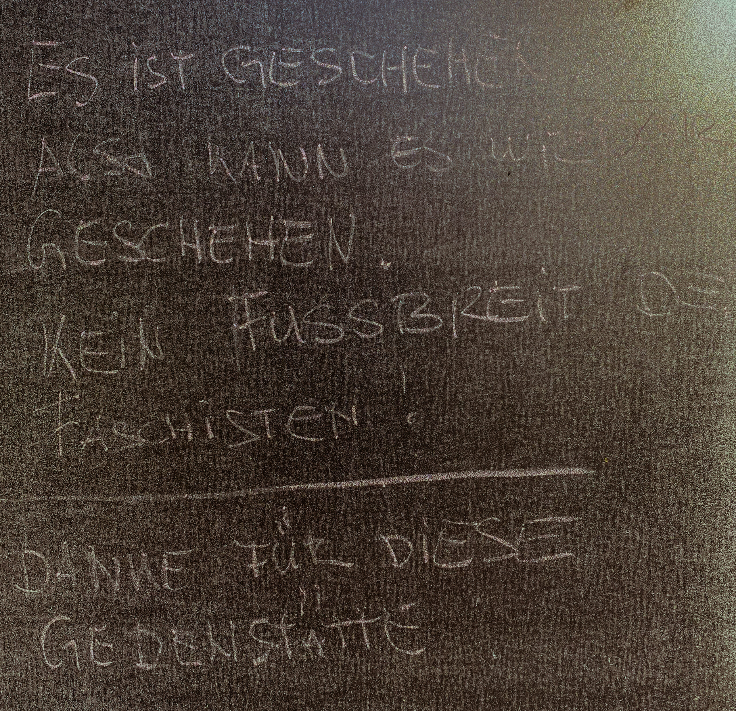 Hier drückt sich viel Unverständnis und Pessismismus aus – es ist passiert, es kann wieder passieren. Das „Es“ bleibt unspezifisch – der Kontext lässt vermuten, dass damit Faschismus, Unmenschlichkeiten und Terror gemeint sind. Auch kommen klare Bezüge zur aktuellen Politik vor.